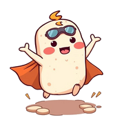 Download and display this heroic digital art featuring a kawaii meatloaf character landing like a superhero. Instant wall art for the brave!